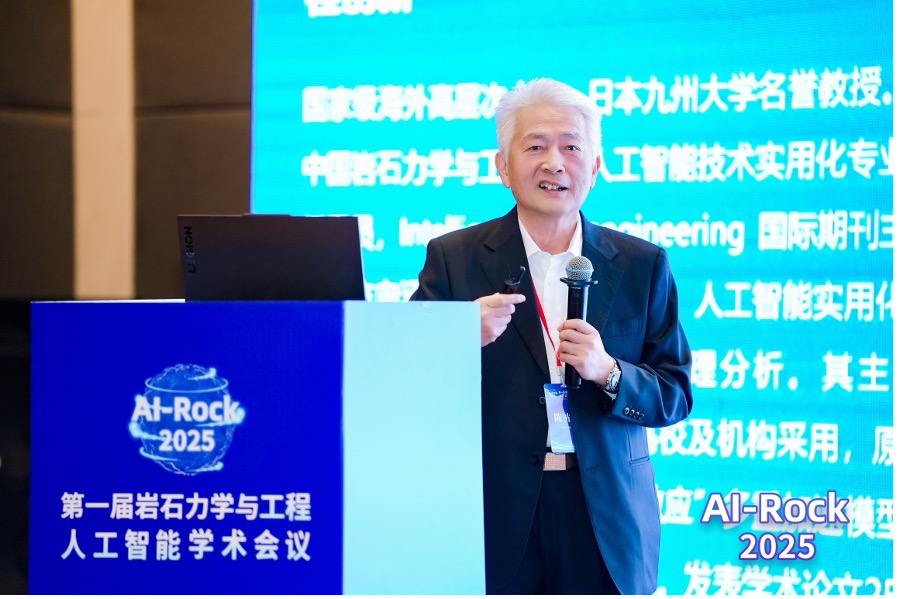 开幕式上,大会主席、人工智能技术实用化专业委员会主任委员、日本工程院院士、河北工业大学陈光齐教授致欢迎辞。陈院士指出,在当前科技革命与产业变革背景下,人工智能正迅速渗透各行各业。本次会议为AI与岩石力学的深度融合搭建了重要平台,有助于推动学科进步与行业升级。